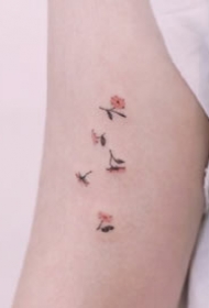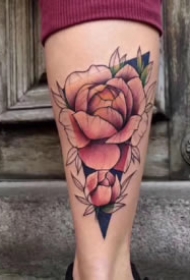 一组漂亮花朵和几何图形搭配的彩色纹身图片
