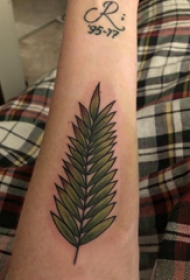 植物纹身 男生手臂上彩色的树叶纹身图片