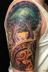 大臂纹身图 男生大臂上彩色的大树纹身图片