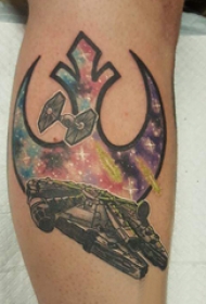欧美小腿纹身 男生小腿上航行的帆船纹身图片