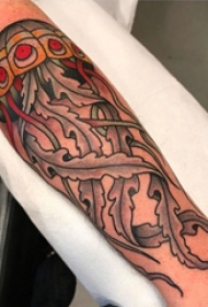 手臂纹身素材 男生手臂上活泼的水母纹身图片