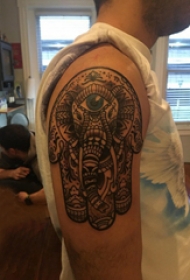 大臂纹身图 男生大臂上彩色的大象纹身图片