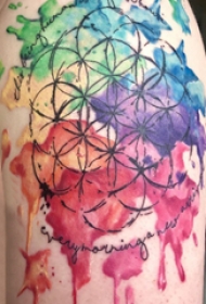 大臂纹身图 男生大臂上彩色的圆形纹身图片