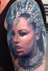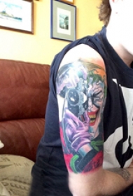 大臂纹身图 男生大臂上彩色的小丑纹身图片