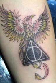 纹身火凤凰 男生手臂上三角形和凤凰纹身图片