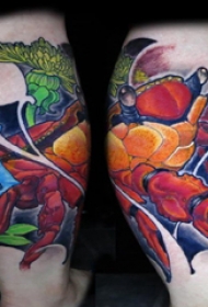 纹身覆盖 女生大臂上彩色的章鱼纹身图片