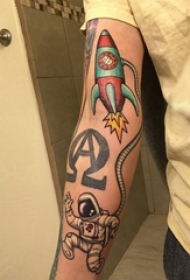 手臂纹身素材 男生手臂上火箭和宇航员纹身图片