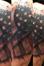 双大臂纹身 男生大臂上彩色的国旗纹身图片