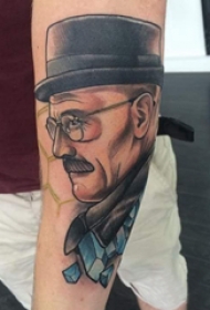 彩绘纹身 男生手臂上彩色的人物肖像纹身图片