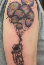 几何元素纹身 男生大臂上气球和宇航员纹身图片