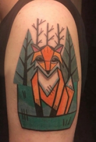 大臂纹身图 男生大臂上树和狐狸纹身图片