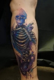 骷髅纹身 男生小腿上菠萝和骷髅纹身图片