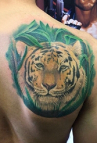 后肩纹身 男生后肩上植物和老虎纹身图片