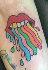 嘴唇纹身 男生手臂上彩色的嘴唇纹身图片