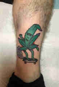 大麻叶子纹身 男生小腿上彩色的大麻叶子纹身图片