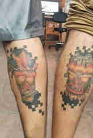 小腿对称纹身 男生小腿上彩色的面具纹身图片