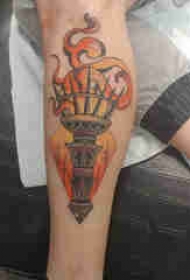 欧美小腿纹身 男生小腿上彩色的火炬纹身图片
