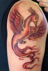 纹身凤凰图 男生大臂上彩色的凤凰纹身图片
