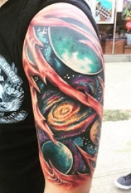 宇宙 纹身 男生大臂上彩色的星空纹身图片