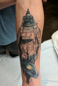 宇航员纹身图案 男生手臂上宇宙和宇航员纹身图片