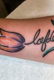 郁金香纹身图案 男生小腿上彩色的郁金香纹身图片