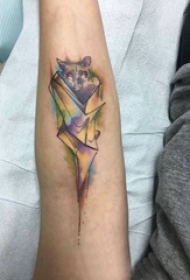 手臂纹身素材 男生手臂上彩色的蝙蝠纹身图片