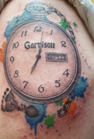 时钟纹身 男生大臂上彩色的时钟纹身图片
