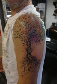 彩绘纹身 男生大臂彩色的生命树纹身图片