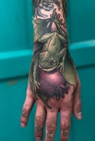 花朵纹身 男生小腿上彩色的花朵纹身图片
