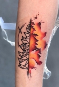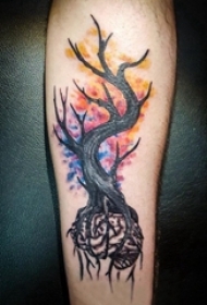 手臂纹身图片 男生手臂上彩色的大树纹身图片