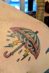 肩膀简约纹身 男生肩部闪电和雨伞纹身图片