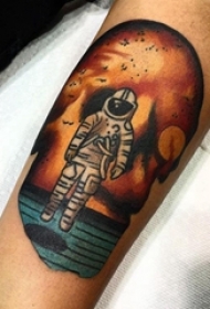 纹身人物图腾 男生手臂上彩色的宇航员纹身图片