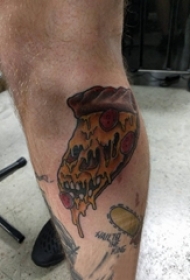 食物纹身 男生小腿上彩色的食物披萨纹身图片
