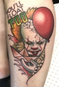 小腿对称纹身 男生小腿上气球和小丑纹身图片