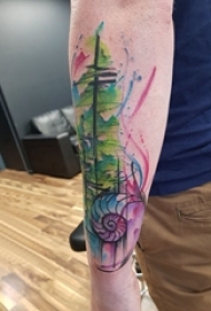 手臂纹身素材 男生手臂上彩色的大树纹身图片