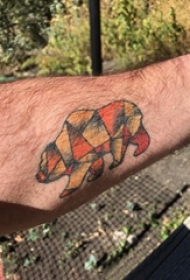 手臂纹身素材 男生手臂上彩色的熊纹身图片