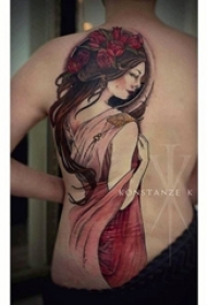 人物肖像纹身 男生后背上彩色的人物肖像纹身图片