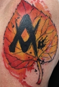 枫叶纹身图 男生大臂上彩色的枫叶纹身图片