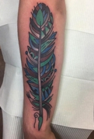 3d羽毛纹身 男生手臂上彩色的羽毛纹身图片