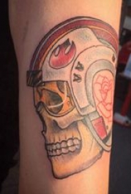 手臂纹身素材 男生手臂上彩色骷髅纹身图片