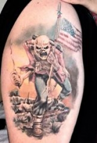 美国士兵纹身 男生大臂上彩色的骷髅美国士兵纹身图片