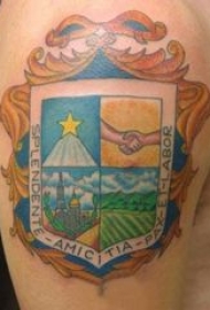 纹身盾牌 男生大臂上彩色的盾牌纹身图片
