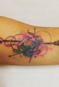 纹身玫瑰 女生手臂上彩色渐变纹身玫瑰图片