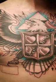 彩色老鹰纹身 男生胸部盾牌和老鹰纹身图片
