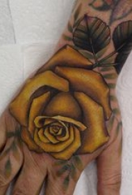 纹身玫瑰 男生手背上彩色的玫瑰纹身图片