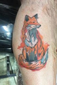 彩色狐狸纹身 男生小腿上彩色的狐狸纹身图片