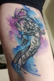 宇航员纹身图案 男生手臂上彩色的宇航员纹身图片
