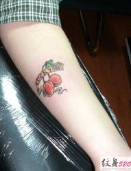 女生手臂上彩绘水彩素描可爱精美草莓纹身图片