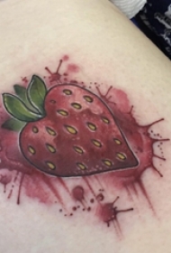 食物纹身 女生大腿上彩色的草莓纹身图片