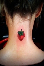 后颈部纹身 女生后颈部彩色的草莓纹身图片